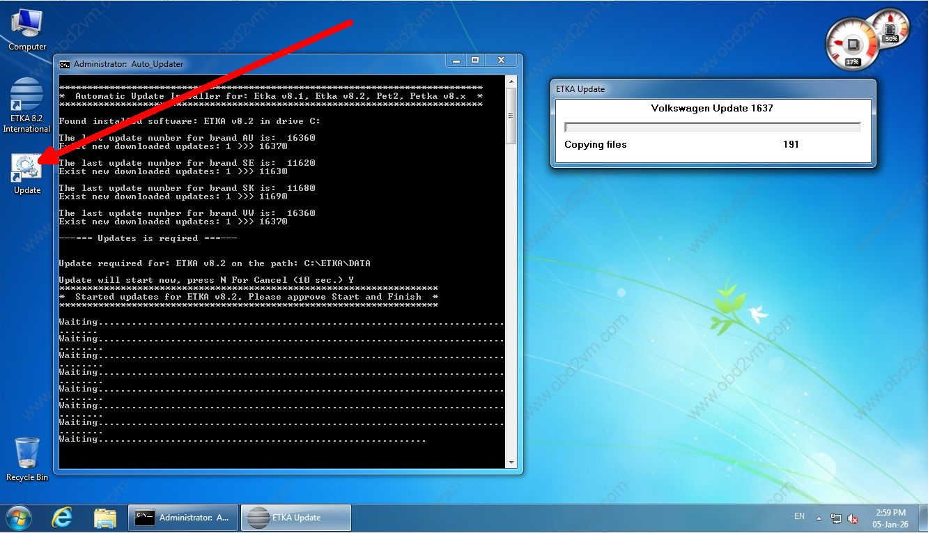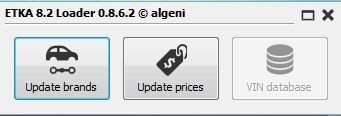Etka 8.2 loader and updater: Double click on Etka shortcut and wait till loader starts, when icons become dark press update brands or update prices and process will start. Ignore loader and Etka will start.